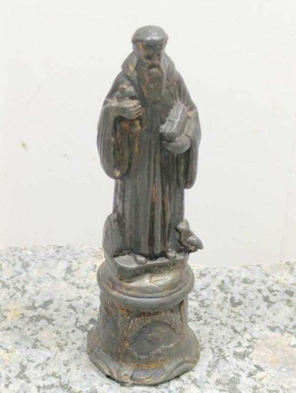 K204------KURŞUN METAL DÖKÜM 1900 BAŞLARI HIRİSTİYAN DİN ADAMI BİBLO başlıklı antika/koleksiyon objesinin menşei belirtilmemiştir. Objenin ait olduğu dönem bilinmeketedir.