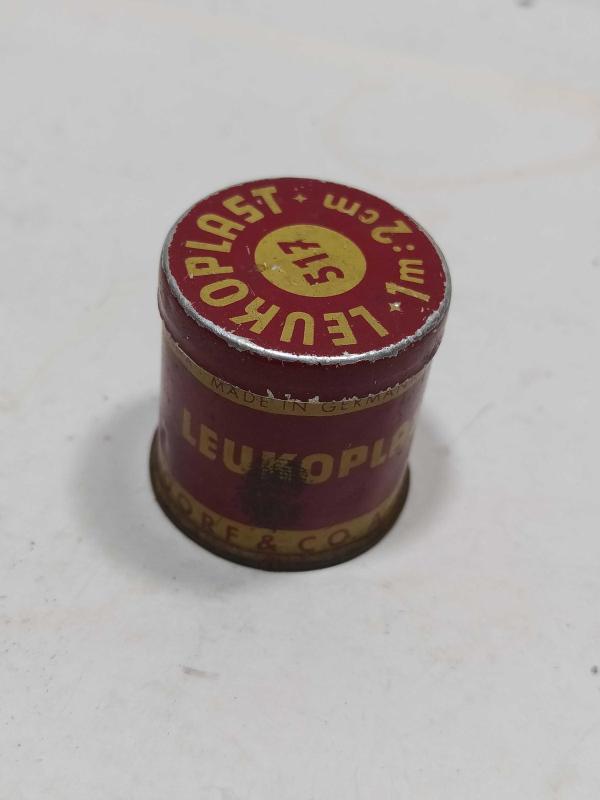 K37----ESKİ TENEKE KÜÇÜK BOY FLASTER KUTUSU başlıklı antika/koleksiyon objesinin menşei belirtilmemiştir. Objenin ait olduğu dönem bilinmeketedir.