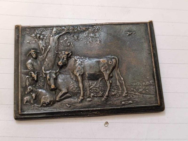 K38----İNEKLER VE ÇİFTÇİ KONULU 1930'LARDAN KALMA PRES BASKI BAKIR PLAKA başlıklı antika/koleksiyon objesinin menşei belirtilmemiştir. Objenin ait olduğu dönem bilinmeketedir.