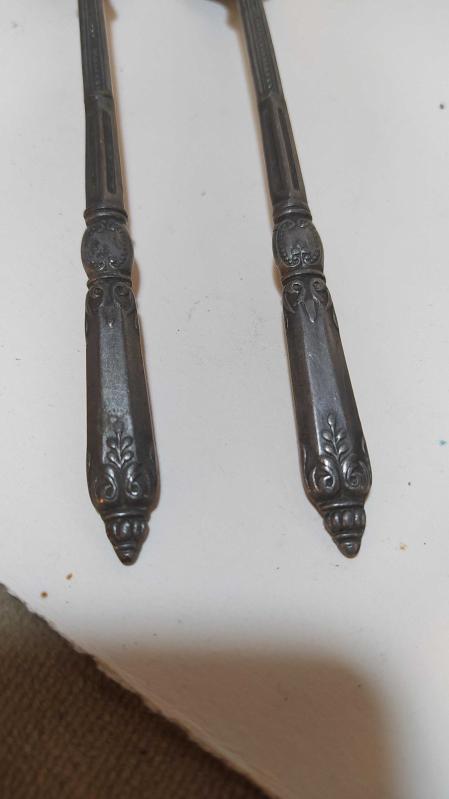 K40--GÜMÜŞ RENGİ KAPLAMA İKİ ADET ESKİ DEMİR ÇATAL başlıklı antika/koleksiyon objesi Türkiye menşe’lidir. 1950-1999 arası dönemine aittir.