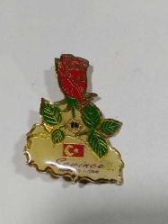 K402-----1998 ÇİÇEK DESENLİ LİONS ROZETİ başlıklı antika/koleksiyon objesi Türkiye menşe’lidir. 1950-1999 arası dönemine aittir.