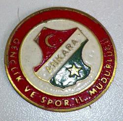 K406-----GENÇLİK VE SPOR İL MÜDÜRLÜĞÜ ANKARA LOGO başlıklı antika/koleksiyon objesinin menşei belirtilmemiştir. Objenin ait olduğu dönem bilinmeketedir.