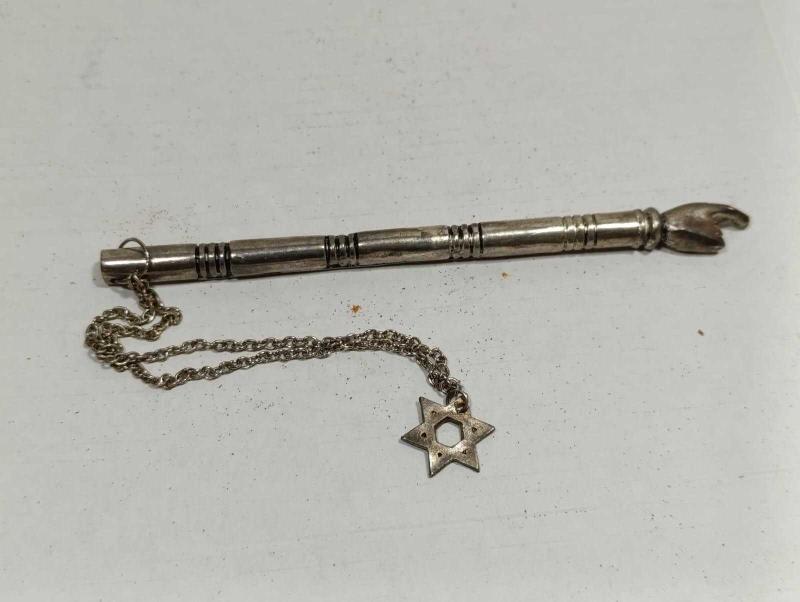 K48----YAHUDİ DİNİ KİTAP OKUMA ÇUBUĞU başlıklı antika/koleksiyon objesinin menşei belirtilmemiştir. Objenin ait olduğu dönem bilinmeketedir.