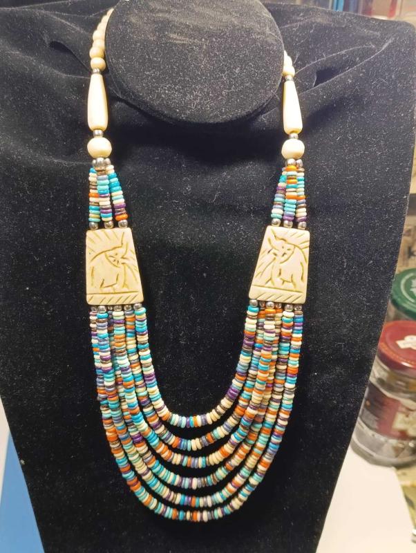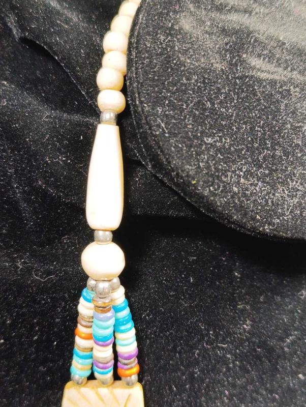 K5---FİL DESENLİ EL YAPIMI KEMİK VE BONCUK KOLYE başlıklı ürün, Antika-Koleksiyon, Hobi-Sanat > Antika > Antika Takı ve Mücevher > Kolye kategorisinde İkinci El olarak satışa sunulmuştur.