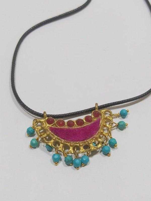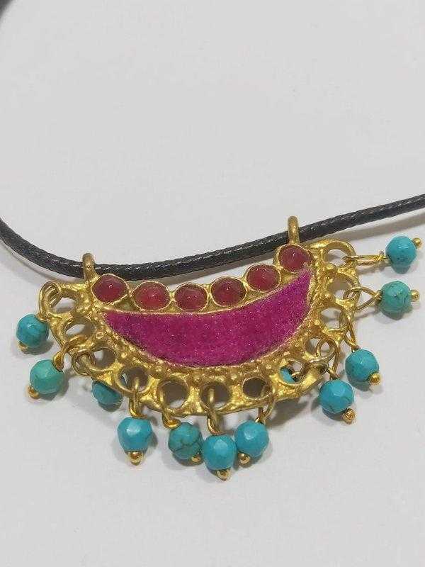 K50---TAŞLI ALTIN RENGİ METAL OTANTİK KOLYE başlıklı antika/koleksiyon objesinin menşei belirtilmemiştir. Objenin ait olduğu dönem bilinmeketedir.