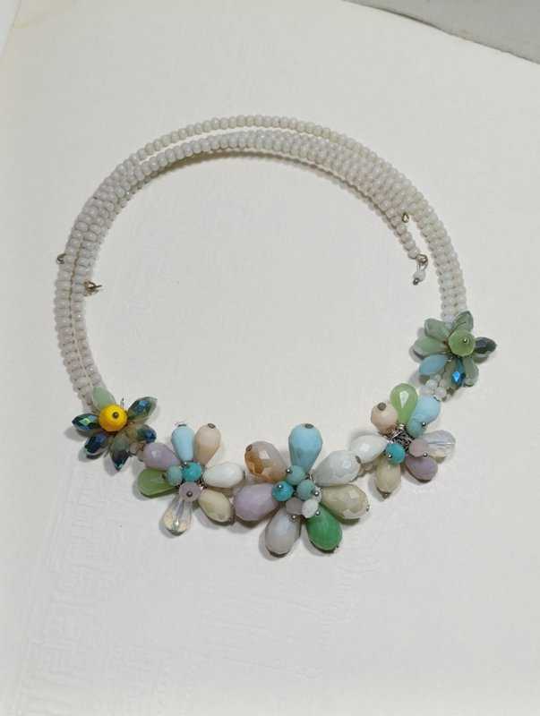 K59-----CAM BONCUK ÇİÇEK DESENLİ KOLYE başlıklı antika/koleksiyon objesi Avrupa menşe’lidir. 2000 ve sonrası dönemine aittir.