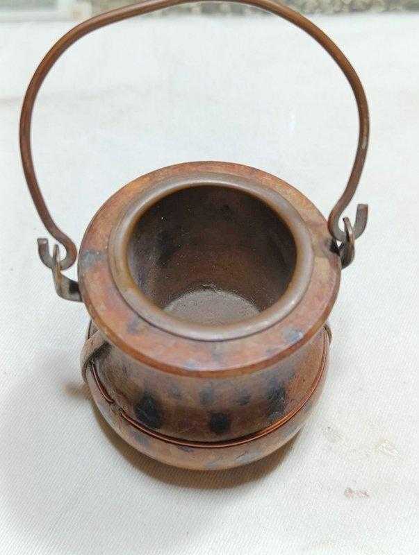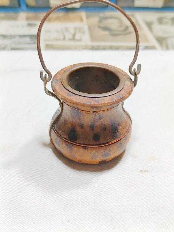 K61-----AHŞAP VE BAKIR DEKORLUK ESKİ KÜÇÜK BOY SU KOVASI başlıklı antika/koleksiyon objesinin menşei belirtilmemiştir. 1950-1999 arası dönemine aittir.