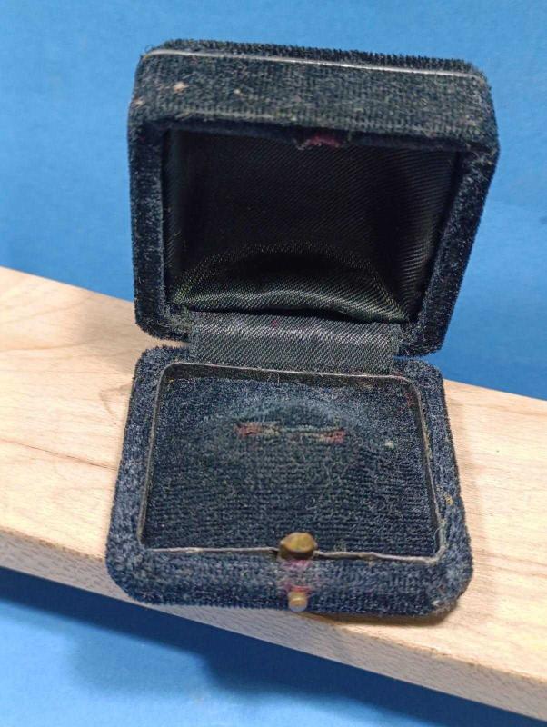 K63----ESKİ KADİFE KAPLAMA YÜZÜK KUTUSU başlıklı antika/koleksiyon objesinin menşei belirtilmemiştir. Objenin ait olduğu dönem bilinmeketedir.