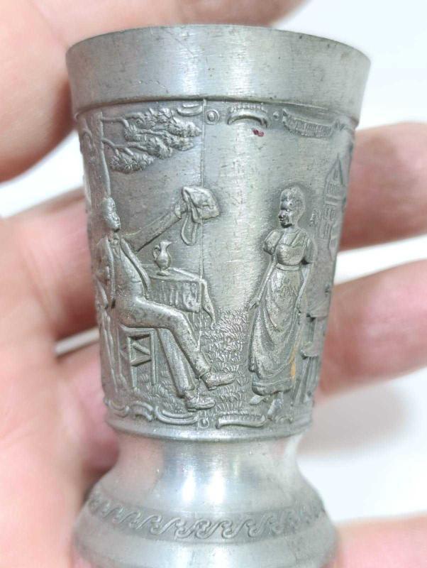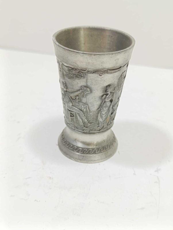K68----BİR ADET ZİN METAL LİKÖR BARDAĞI başlıklı antika/koleksiyon objesinin menşei belirtilmemiştir. Objenin ait olduğu dönem bilinmeketedir.