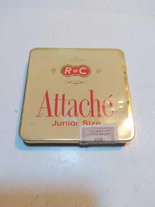 K79-----ATTACHE JUNIOR SİZE ESKİ BOŞ TENEKE SİGARA KUTUSU başlıklı antika/koleksiyon objesinin menşei belirtilmemiştir. Objenin ait olduğu dönem bilinmeketedir.