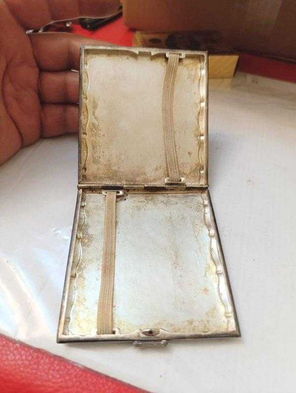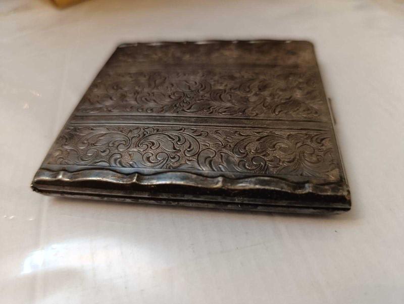 K79----GÜMÜŞ KAPLAMA ANTİKA SİGARA TABAKASI başlıklı antika/koleksiyon objesinin menşei belirtilmemiştir. Objenin ait olduğu dönem bilinmeketedir.