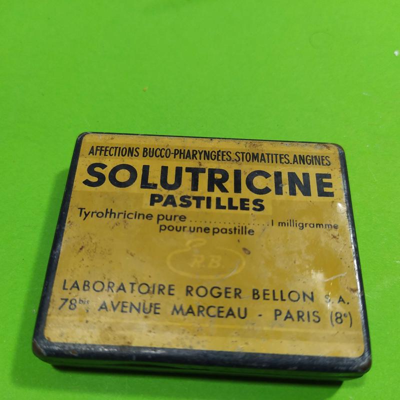 K83----SOLUTRICINE PASTİL TENEKE KUTUSU--BOŞ başlıklı antika/koleksiyon objesinin menşei belirtilmemiştir. 1980-1999 arası dönemine aittir.