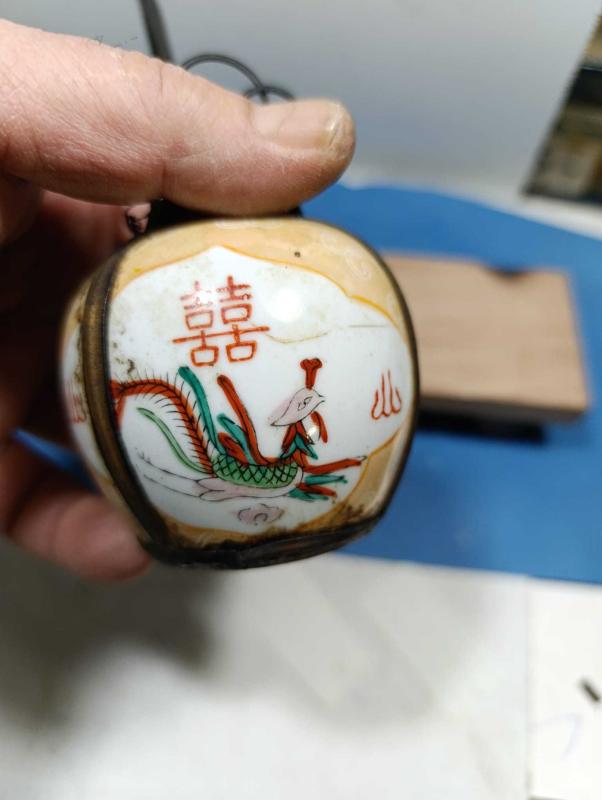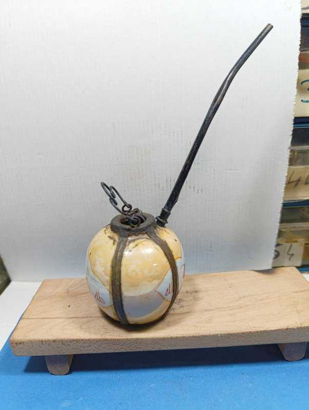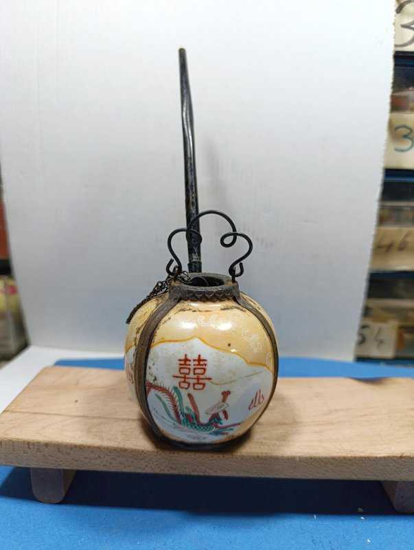 K9----1900'LER ÇİN ÜRETİMİ ANTİKA PİRİNÇ DEKORLU PORSELEN İÇKİ PİPOSU başlıklı antika/koleksiyon objesinin menşei belirtilmemiştir. Objenin ait olduğu dönem bilinmeketedir.