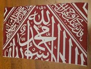 KABE İÇ ÖRTÜSÜ. ALLAH VE MUHAMMED YAZILI. BÜYÜK EBATTIR. BİTİYOR. başlıklı antika/koleksiyon objesi Asya menşe’lidir. Objenin ait olduğu dönem bilinmeketedir.