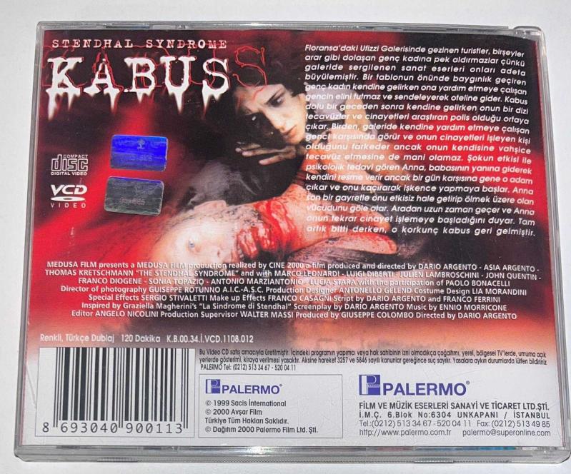 KABUS - THE STENDHAL SYNDROME * STENDHAL SENDROMU * DARIO ARGENTO, ASIA ARGENTO * 1996 * VCD TÜRKÇE DUBLAJLI TÜRKÇE DUBLAJLI İKİNCİ EL, TEMİZCE