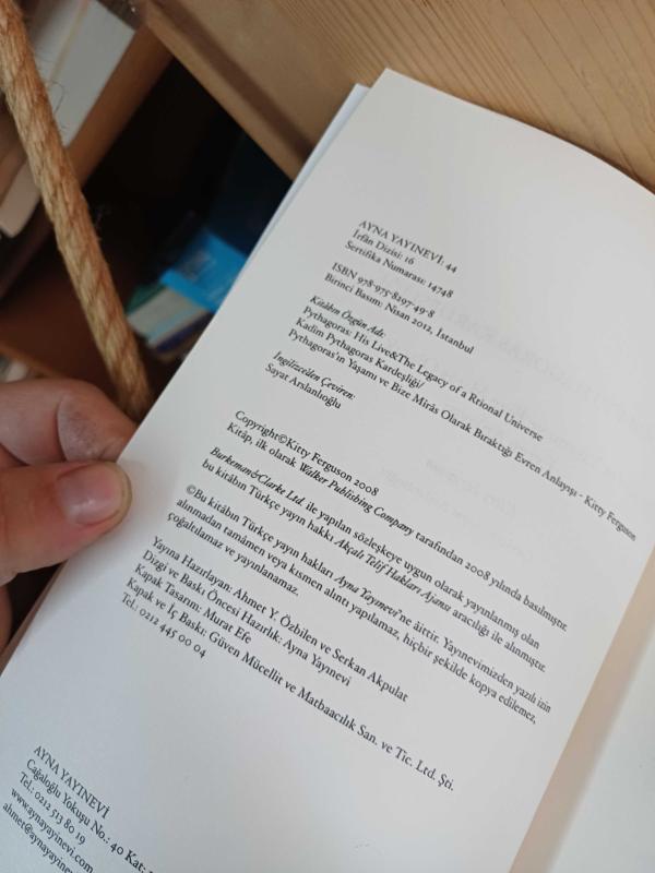 KADİM PYTHAGORAS KARDEŞLİĞİ - pythagoras'ın yaşamı ve bize miras olarak bıraktığı evren anlayışı-, KITTY FERGUSON tarafından kaleme alınmıştır. Kitap 2008 yılında AYNA YAYINEVİ tarafından [İstanbul] yayınlanmıştır. Bu baskının çevirisi SAYAT ARSLANLIOĞLU tarafından yapılmıştır. 374 sayfadır. KADİM PYTHAGORAS KARDEŞLİĞİ - pythagoras'ın yaşamı ve bize miras olarak bıraktığı evren anlayışı- adlı eser Türkçe dilindedir.