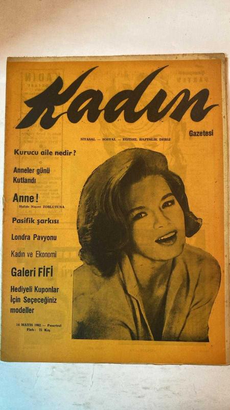 KADIN GAZETESİ - SİYASAL, SOSYAL, EĞİTSEL DERGİ - TARİH: 14 MAYIS 1962 SAYI: 714 - KURUCU AİLE NEDİR? - İFFET HALİM ORUZ - ANNE! - HALİDE NUSRET ZORLUTUNA - GALERİ FİFİ - NAGAHAN AKAY - II. MİLLİ SOSYAL HİZMETLER KONFERANSI - YAZAR: HASENE ILGAZ - KURUCU AİLE NEDİR? - ANNELER GÜNÜ KUTLANDI - PASİFİK ŞARKISI - LONDRA PAVYONU - KADIN VE EKONOMİ - GALERİ FİFİ - HEDİYELİ KUPONLAR İÇİN SEÇECEĞİNİZ MODELLER - YALNIZ BİR GÜN, YAZAR : SABRİYE KANAD - SUZAN AKTAŞ - KADIN VE EKONOMİ - KIR YEMEKLERİ - HER AY 3 HEDİYE MÜSABAKASI - LONDRA PAVYONU, YAZAR : TUNÇAY BAYDAR - NECDET KOYUTÜRK ORKESTRASI - YENİ BİR KRALİÇE SEÇİLDİ - TUNÇAY BAYDAR - BİZİMKİLER VE ONLAR - PASİFİK ŞARKISI ÜZERİNE: JAK JABES - ARZULAR ŞİİRİ, ŞAİR : KEMAL BOZKURT - BAKIŞLARIMDA GECE ŞİİRİ, ŞAİR : NECLA AYSAN - KORKU ŞİİRİ, ŞAİR : ÖNDER ÖZTÜREL - HÜSRAN ŞİİRİ, ŞAİR : AYŞE PERİ SONSUZGÜN - ÇEKİNGENLİK - MÜZİK BİLMECESİNE DAİR, YAZAR : GONCA GÜLSER ŞENLER - YALNIZ BİR GÜN HİKAYESİ - YILIN ŞAMPİYONU - TAM TAKIM EKSİKSİZ 16 SAYFA, İFFET HALİM ORUZ tarafından kaleme alınmıştır. Eser MUZAFFER USLUATA editörlüğünde hazırlanmıştır. KADIN GAZETESİ - SİYASAL, SOSYAL, EĞİTSEL DERGİ - TARİH: 14 MAYIS 1962 SAYI: 714 - KURUCU AİLE NEDİR? - İFFET HALİM ORUZ - ANNE! - HALİDE NUSRET ZORLUTUNA - GALERİ FİFİ - NAGAHAN AKAY - II. MİLLİ SOSYAL HİZMETLER KONFERANSI - YAZAR: HASENE ILGAZ - KURUCU AİLE NEDİR? - ANNELER GÜNÜ KUTLANDI - PASİFİK ŞARKISI - LONDRA PAVYONU - KADIN VE EKONOMİ - GALERİ FİFİ - HEDİYELİ KUPONLAR İÇİN SEÇECEĞİNİZ MODELLER - YALNIZ BİR GÜN, YAZAR : SABRİYE KANAD - SUZAN AKTAŞ - KADIN VE EKONOMİ - KIR YEMEKLERİ - HER AY 3 HEDİYE MÜSABAKASI - LONDRA PAVYONU, YAZAR : TUNÇAY BAYDAR - NECDET KOYUTÜRK ORKESTRASI - YENİ BİR KRALİÇE SEÇİLDİ - TUNÇAY BAYDAR - BİZİMKİLER VE ONLAR - PASİFİK ŞARKISI ÜZERİNE: JAK JABES - ARZULAR ŞİİRİ, ŞAİR : KEMAL BOZKURT - BAKIŞLARIMDA GECE ŞİİRİ, ŞAİR : NECLA AYSAN - KORKU ŞİİRİ, ŞAİR : ÖNDER ÖZTÜREL - HÜSRAN ŞİİRİ, ŞAİR : AYŞE PERİ SONSUZGÜN - ÇEKİNGENLİK - MÜZİK BİLMECESİNE DAİR, YAZAR : GONCA GÜLSER ŞENLER - YALNIZ BİR GÜN HİKAYESİ - YILIN ŞAMPİYONU - TAM TAKIM EKSİKSİZ 16 SAYFA adlı eser Türkçe dilindedir.