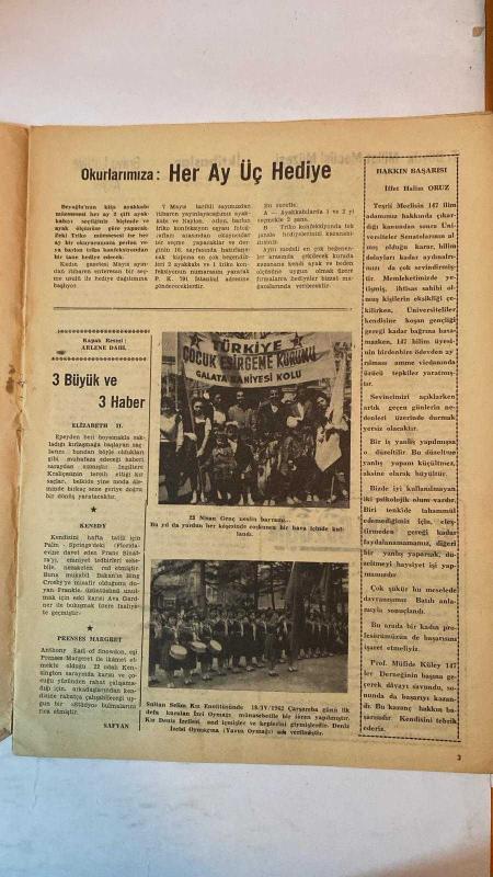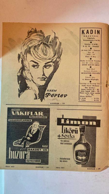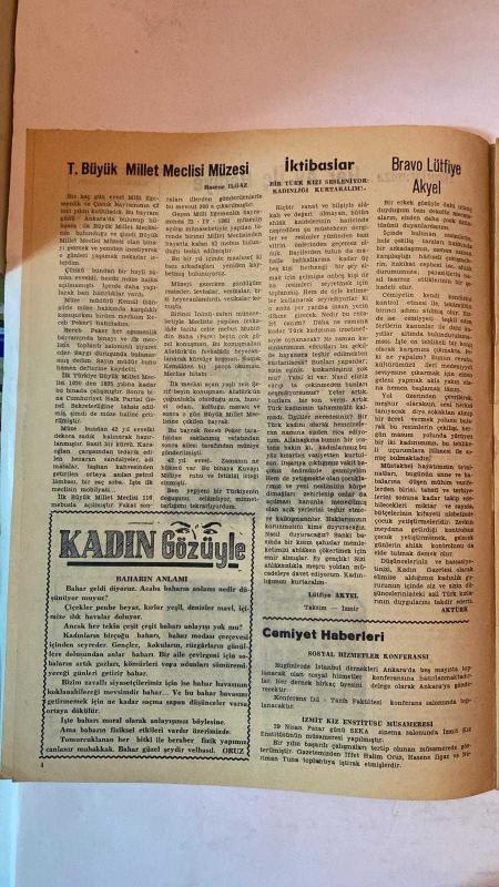 KADIN GAZETESİ - SİYASAL, SOSYAL, EĞİTSEL DERGİ - TARİH: 30 NİSAN 1962 SAYI: 712 - HAKKIN BAŞARISI - İFFET HALİM ORUZ - ZEKİ TRİKO MAMULLERİ - NAGAHAN AKAY - TÜRKİYE BÜYÜK MİLLET MECLİSİ MÜZESİ - HASENE ILGAZ - SULTAN SELİM KIZ ENSTİTÜSÜ İZCİ OYMAĞI TÖRENİ - 3 BÜYÜK VE 3 HABER - KADIN GÖZÜYLE - AMERİKA’DAN MEKTUPLAR: SİNEMA AKADEMİ - CEMİYET HABERLERİ - SİNEMA AKADEMİ MÜKAFATI NASIL DAĞITILDI, YAZAN: NADİDE ÇAYLIOĞLU - ANADOLU EN ESKİ ÇAĞLARINDA KADIN VE TOPLUMDAKİ YERİ, YAZAR : REFİK DURU - PAZARLIK, YAZAR : GÜRCAN BIÇAKÇI - GÜLER YÜZ TATLI DİL, YAZAR : SUZAN AKTAŞ - BAHARIN YEMEĞİ ENGİNAR - ÇOCUK GÜZELLİĞİ - MÜZİKTEN YANA, YAZAR : JAK JABES - TUNÇAY BAYDAR - BARIŞTILAR MI? - EVERLY KARDEŞLER VE JOHNNY TİLLOTSON - BOBBY DARIN - İSTANBUL PAVYON - İNSAN SARRAFI, YAZAR : YÜKSEL ŞENLER - SIZINTILAR, YAZAR : SAFRAN SERİM - BİR BEKAR ODASINDA ŞİİRİ, ŞAİR : ORHAN ÖZACUN - UZAT ELLERİNİ ŞİİRİ, ŞAİR : HÜSEYİN TOYGAR - YOKSUN ŞİİRİ, ŞAİR : ÇETİN YERLİKAYA - RUH S - TAM TAKIM EKSİKSİZ 16 SAYFA, İFFET HALİM ORUZ tarafından kaleme alınmıştır. Eser MUZAFFER USLUATA editörlüğünde hazırlanmıştır. KADIN GAZETESİ - SİYASAL, SOSYAL, EĞİTSEL DERGİ - TARİH: 30 NİSAN 1962 SAYI: 712 - HAKKIN BAŞARISI - İFFET HALİM ORUZ - ZEKİ TRİKO MAMULLERİ - NAGAHAN AKAY - TÜRKİYE BÜYÜK MİLLET MECLİSİ MÜZESİ - HASENE ILGAZ - SULTAN SELİM KIZ ENSTİTÜSÜ İZCİ OYMAĞI TÖRENİ - 3 BÜYÜK VE 3 HABER - KADIN GÖZÜYLE - AMERİKA’DAN MEKTUPLAR: SİNEMA AKADEMİ - CEMİYET HABERLERİ - SİNEMA AKADEMİ MÜKAFATI NASIL DAĞITILDI, YAZAN: NADİDE ÇAYLIOĞLU - ANADOLU EN ESKİ ÇAĞLARINDA KADIN VE TOPLUMDAKİ YERİ, YAZAR : REFİK DURU - PAZARLIK, YAZAR : GÜRCAN BIÇAKÇI - GÜLER YÜZ TATLI DİL, YAZAR : SUZAN AKTAŞ - BAHARIN YEMEĞİ ENGİNAR - ÇOCUK GÜZELLİĞİ - MÜZİKTEN YANA, YAZAR : JAK JABES - TUNÇAY BAYDAR - BARIŞTILAR MI? - EVERLY KARDEŞLER VE JOHNNY TİLLOTSON - BOBBY DARIN - İSTANBUL PAVYON - İNSAN SARRAFI, YAZAR : YÜKSEL ŞENLER - SIZINTILAR, YAZAR : SAFRAN SERİM - BİR BEKAR ODASINDA ŞİİRİ, ŞAİR : ORHAN ÖZACUN - UZAT ELLERİNİ ŞİİRİ, ŞAİR : HÜSEYİN TOYGAR - YOKSUN ŞİİRİ, ŞAİR : ÇETİN YERLİKAYA - RUH S - TAM TAKIM EKSİKSİZ 16 SAYFA adlı eser Türkçe dilindedir.