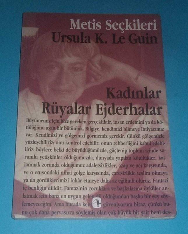 KADINLAR RÜYALAR VE EJDERHALAR / SEÇME YAZILAR, Ursula K. Le Guin tarafından kaleme alınmıştır. Eser Müge Gürsoy Sökmen editörlüğünde hazırlanmıştır. Kitap 2006 yılında Metis Yayınları tarafından [İstanbul] 9789753422239 ISBN kodu ile yayınlanmıştır. Bu baskının çevirisi Kolektif tarafından yapılmıştır. 145 sayfadır. KADINLAR RÜYALAR VE EJDERHALAR / SEÇME YAZILAR adlı eser Türkçe dilindedir.