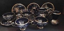 KAHVE FİNCANI, Porselen Fincan. Tavus Kuşu Motifli Kahve Fincan Takımı. 4 Adet Tabak 4 Adet Fincan 1 Adet şekerlik ve 1 Adet Vazo'dan Oluşan Fincan Lotu.