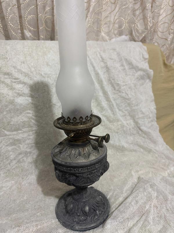 KALAY TABANLI ANTİKA VİKTORYA DÖNEMİ GAZ LAMBASI Camsız Yükseklik : 30 Camlı yükseklik 54 cm Genişlik: 18 cm Derinlik: 18 cm Rokoko tarzında dekore edilmiş kalay tabanlı Viktorya dönemi bir gaz lambası. Cam baca ve yuvarlak oyma cam gölgelikle kaplı çift brülöre sahiptir. Kosovadan satın aldım. başlıklı antika/koleksiyon objesi Avrupa menşe’lidir. 18.yy öncesi dönemine aittir.