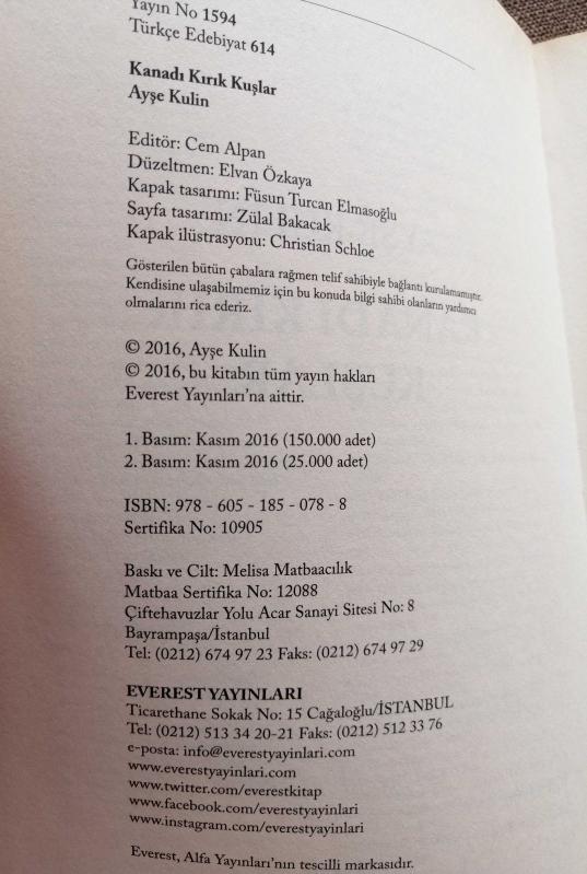 KANADI KIRIK KUŞLAR, AYŞE KULİN tarafından kaleme alınmıştır. Kitap 2016 yılında yayınlanmıştır. KANADI KIRIK KUŞLAR adlı eser Türkçe dilindedir.
