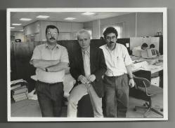 ** KANAL 6'DA SUNUCU CAN OKANAR VE PROGRAM YAPIMCILARI ORİJİNAL FOTOĞRAF ** 17.8 x 12.6 cm.ebadında,arka yüzü yazısız,çok iyi kondüsyonda eski fotoğraftır... Beyaz saçlı olan Can Okanar...