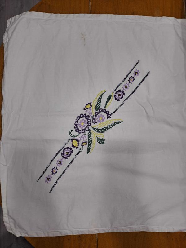 KANAVİÇE İŞLEMELİ KIRLENT. KENAR DİKİŞİ 5CM Sökük. Üzerinde az leke var.