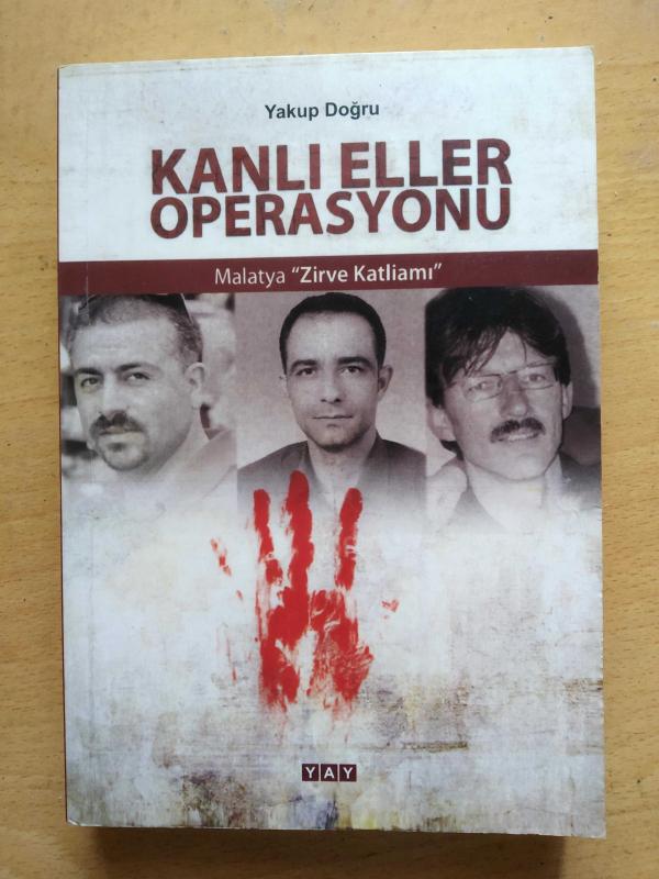 KANLI ELLER OPERASYONU - MALATYA ZİRVE KATLİAMI, YAKUP DOĞRU tarafından kaleme alınmıştır. Kitap 2014 yılında YENİ ANADOLU YAYINCILIK tarafından [İSTANBUL] 9786056475702 ISBN kodu ile yayınlanmıştır. Satışta olan kitap, yayınevinin 1. baskısıdır. 288 sayfadır. KANLI ELLER OPERASYONU - MALATYA ZİRVE KATLİAMI adlı eser Türkçe dilindedir.