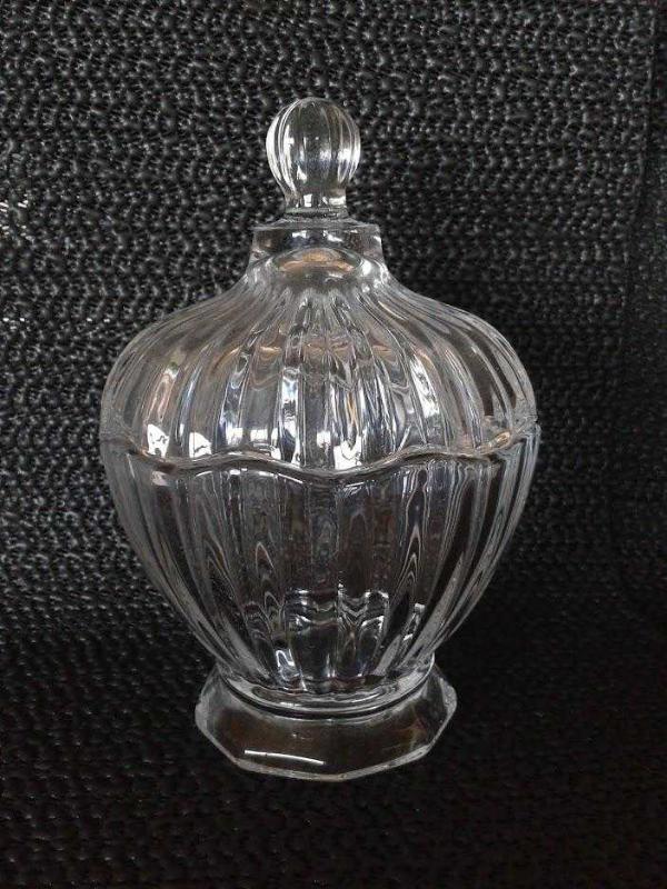 KAPAKLI CAM ŞEKERLİK ESKİLERDEN KALMA (KUSURSUZ) 1970 li senelerden kalma, kusursuz kapaklı, cam şekerlik, dekorluk yada amacına uygun. Kapak dahil Yükseklik: 13cm Çap: 9cm Çekimden kaynaklı renk farkı oluşmaktadır.