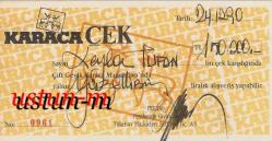 ** KARACA MAĞAZALARI ÇEKİ ** Ufak ebatta,1990 tarihli ve çok temiz vaziyette,koleksiyon için ideal bir çektir.. .