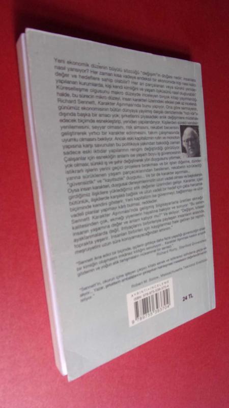 KARAKTER AŞINMASI - Yeni kapitalizmde İşin Kişilik Üzerindeki Etkileri, Richard Sennett tarafından kaleme alınmıştır. Kitap 2014 yılında Ayrıntı yayınları tarafından [İSTANBUL] yayınlanmıştır. Bu baskının çevirisi Barış YILDIRIM tarafından yapılmıştır. 181 sayfadır. KARAKTER AŞINMASI - Yeni kapitalizmde İşin Kişilik Üzerindeki Etkileri adlı eser Türkçe dilindedir.