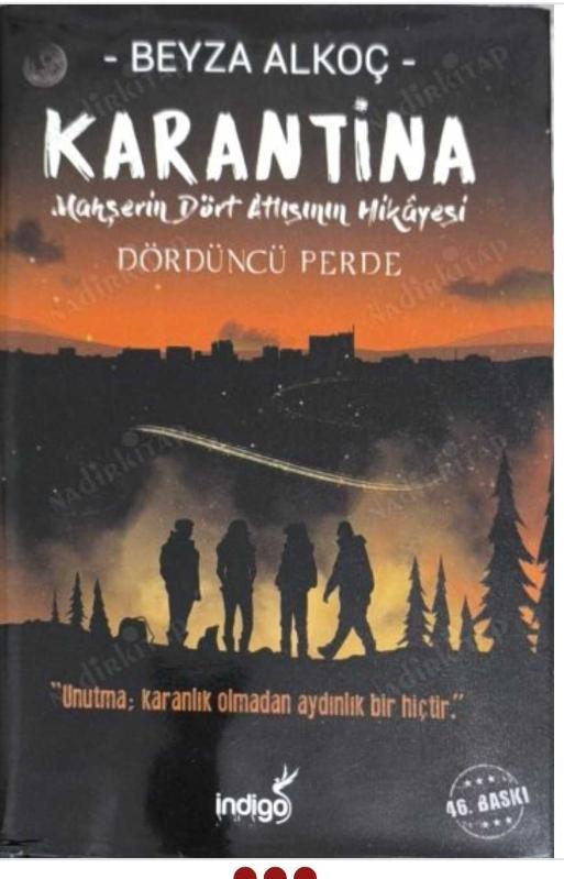 KARANTİNA - MAHŞERİN DÖRT ATLISININ HİKAYESİ - DÖRDÜNCÜ PERDE - CİLTLİ, Beyza Alkoç tarafından kaleme alınmıştır. Kitap 2021 yılında İndigo tarafından [İstanbul] yayınlanmıştır. KARANTİNA - MAHŞERİN DÖRT ATLISININ HİKAYESİ - DÖRDÜNCÜ PERDE - CİLTLİ adlı eser Türkçe dilindedir.