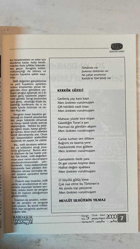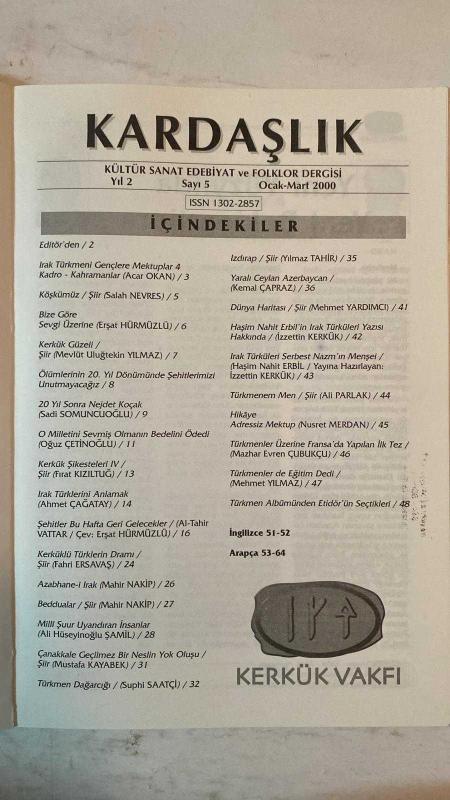 KARDAŞLIK KÜLTÜR SANAT EDEBİYAT VE FOLKLOR DERGİSİ - OCAK-MART 2000 SAYI: 5 NEJDET KOÇAK - ABDULLAH ABDURRAHMAN - ACAR OKAN - SALAH NEVRES - ERŞAT HÜRMÜZLÜ - MEVLÜT ULUĞTEKİN YILMAZ - SADI SOMUNCUOĞLU - OĞUZ ÇETİNOĞLU - FIRAT KIZILTUĞ - AHMET ÇAĞATAY - AL-TAHIR VATTAR - FAHRİ ERSAVAŞ - MAHIR NAKIP - ALİ HÜSEYİNOĞLU ŞAMİL - MUSTAFA KAYABEK - SUPHI SAATÇI - YILMAZ TAHİR - KEMAL ÇAPRAZ - MEHMET YARDIMCI - İZZETTİN KERKÜK - HAŞİM NAHİT ERBİL - ALİ PARLAK - NUSRET MERDAN - MAZHAR EVREN ÇUBUKÇU - MEHMET YILMAZ - NAGAHAN (ORBAY) AKAY - HASAN DEMİRCİ - HABİB HÜRMÜZLÜ - ALİ İHSAN NAQIB - ZİYAT AKKOYUNLU - YAVUZ AKPINAR - AHMET B. ERCİLASUN - HAŞİM KARPUZ - SAİM SAKAOĞLU - ABDÜSSELAM ULUÇAM - YALMAN ARSLAN - KEMAL BEYATLI - AYDİL EROL - RABİA KOCAMAN - DAHLIA NAQIB - ÖMER ÖZTÜRKMEN - SUPHI SALT - RIFAT YOLCU - RIZA DEMİRCİ - ADİL ŞERİF - TÜRKMEN ŞEHİTLERİ - IRAK TÜRKMENİ GENÇLERE MEKTUPLAR - KADRO - KAHRAMANLAR - KÖŞKÜMÜZ - BİZE GÖRE - SEVGİ ÜZERİNE - KERKÜK GÜZELİ - TAM TAKIM EKSİKSİZ 64 SAYFA adlı eser, Kitap > Süreli Yayınlar > Dergiler > Magazin, Moda kategorisinde İkinci El olarak satıştadır.