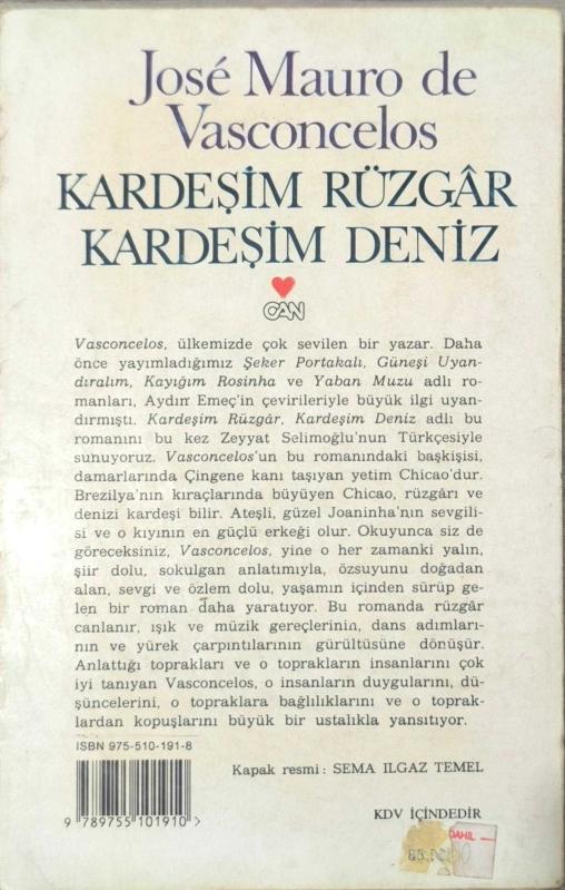 KARDEŞİM RÜZGAR KARDEŞİM DENİZ, VASCONCELOS tarafından kaleme alınmıştır. Kitap 1988 yılında CAN YAYINLARI tarafından yayınlanmıştır. 178 sayfadır. KARDEŞİM RÜZGAR KARDEŞİM DENİZ adlı eser Türkçe dilindedir.