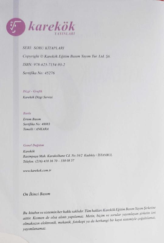 LÜTFEN AÇIKLAMAYI OKUYUN... KAREKÖK YAYINLARI YENİ NESİL SORULARLA MATEMATİK SIFIR 504 SAYFA 2022 KİTABIN YARISI ÇÖZÜLMÜŞTÜR. 2. EL KİTAP
