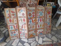 ANADOLU KİLİM HALI KANAVİÇE EL İŞİ ÖRNEKLERİ ŞEKLİNDE 75X24 CM 5 Lİ TABLO VEYA PANO ÖRNEK ÇIKARMAK VEYA DEKORASYON AMAÇLI KOLEKSİYONLUK