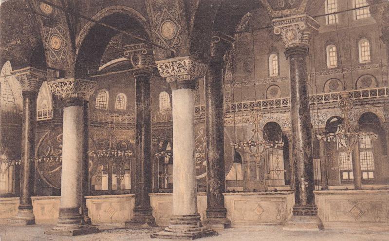 İstanbul - Ayasofya Cami İç Görünüm Constantinople S.te Sophie Ca Galerie. Editör: E. F. Rochat, Constantinople, Edition d'Art de l'Orient. Sepya tonlu, arka yüzü boş, 14x9 cm.