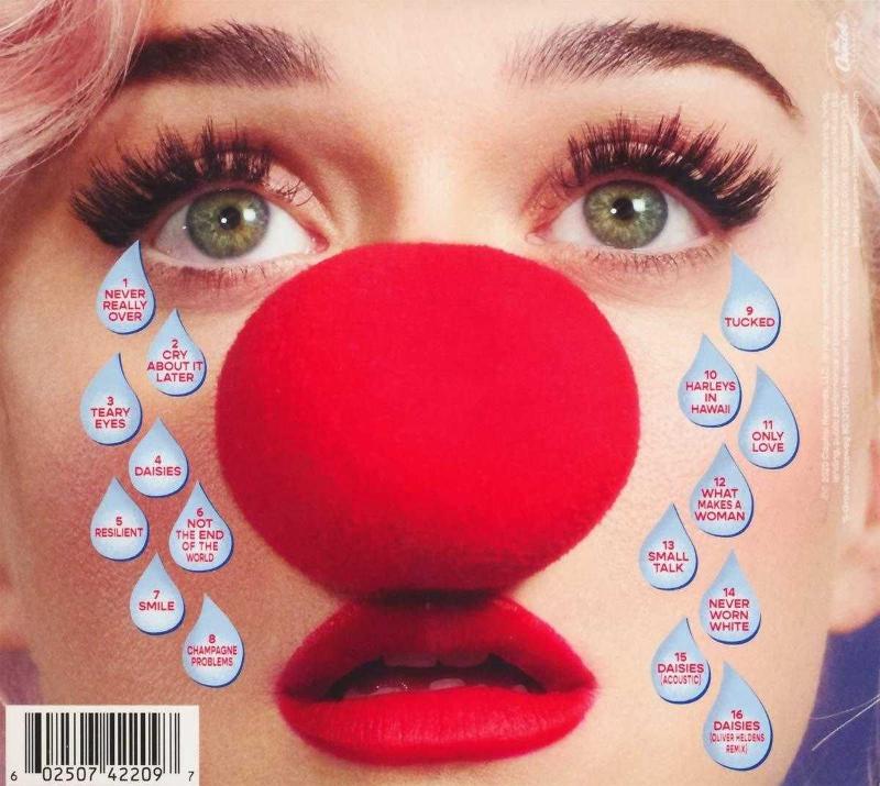 1 Never Really Over 3:43 2 Cry About It Later 3:09 3 Teary Eyes 3:02 4 Daisies 2:54 5 Resilient 3:07 6 Not The End Of The World 2:58 7 Smile 2:46 8 Champagne Problems 3:16 9 Tucked 3:07 10 Harleys In Hawaii 3:05 11 Only Love 3:18 12 What Makes A Woman 2:11 13 Small Talk 2:41 14 Never Worn White 3:45 15 Daisies (Acoustic) 3:05 16 Daisies (Oliver Heldens Remix) 3:35 2020 DELUXE CD AMBALAJINDADIR