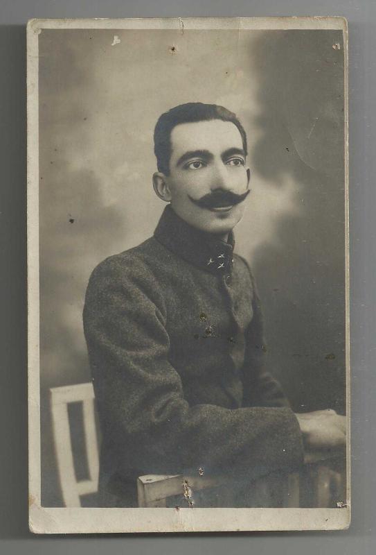 ** KAYTAN BIYIKLI İLGİNÇ ASKERİ TİP FOTOĞRAFI..(ÜÇ YILDIZ) ** 13.9 x 8.7 cm.ebadında,gayet iyi kondüsyonda,arkası yazısız, yakasında üç yıldızı olan ilginç bir asker fotoğrafıdır...