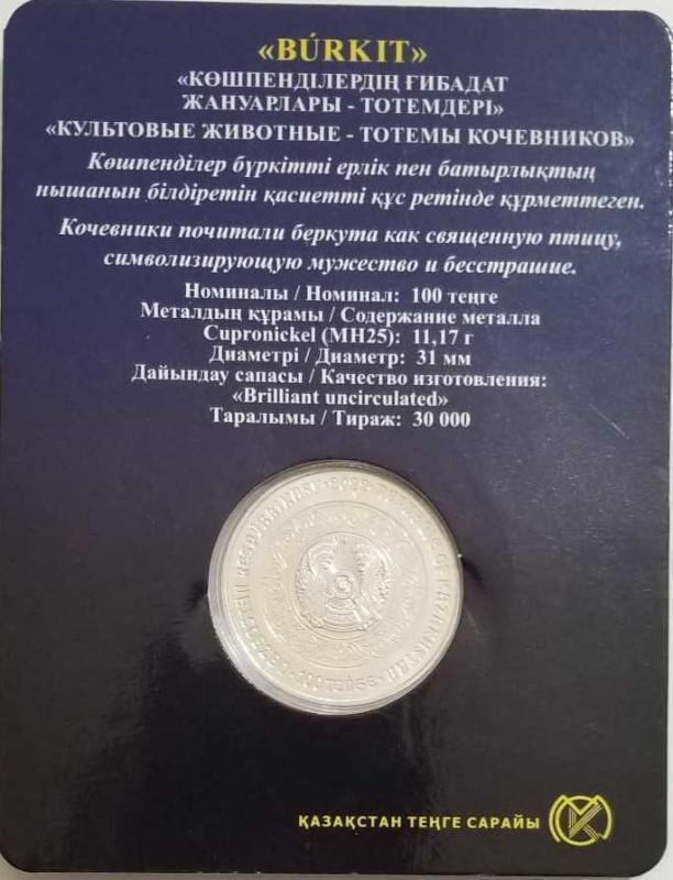 KAZAKİSTAN 2022 YILI '' BURKİT - KARTAL '' HATIRA 100 TENGE-ORJİNAL KİTİNDE / ÇİL KONDİSYON