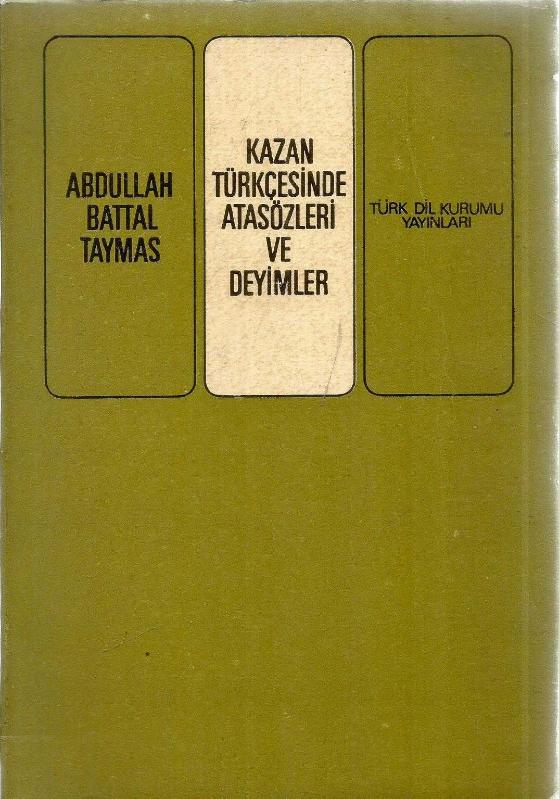 KAZAN TÜRKÇESİNDE ATASÖZLERİ VE DEYİMLER, ABDULLAH BATTAL TAYMAS tarafından kaleme alınmıştır. Kitap 1968 yılında Türk Dil Kurumu tarafından [ANKARA] yayınlanmıştır. 151 sayfadır. KAZAN TÜRKÇESİNDE ATASÖZLERİ VE DEYİMLER adlı eser Türkçe dilindedir.