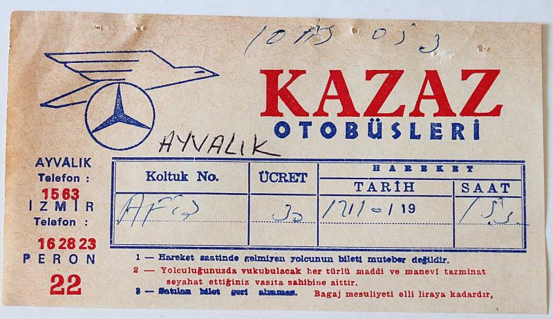 KAZAZ OTOBÜSLERİ (OTOBÜS BİLETİ) * Sitemizde satışa sunulan ürünler aksi belirtilmedikçe 2. eldir. * Ürünler koleksiyon amaçlıdır, tam olarak kullanım amacınıza uygun olmayabilir. * Ürün açıklamaları dikkatle okunmalı ve fotoğrafları incelenmelidir.(Ürün fotoğrafları ürünün hakiki rengini, tonunu göstermeyebilir.) Ürünleri sipariş etmeden önce resimleri incelemeyi unutmayın.. Diğer Ürünlerimiz için Mağazamızı ziyaret edebilirsiniz..