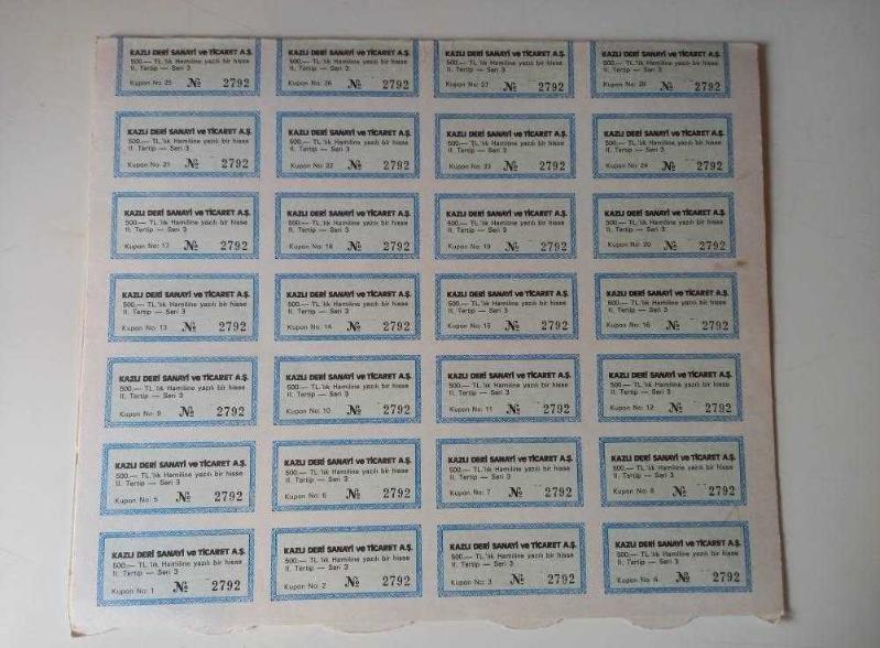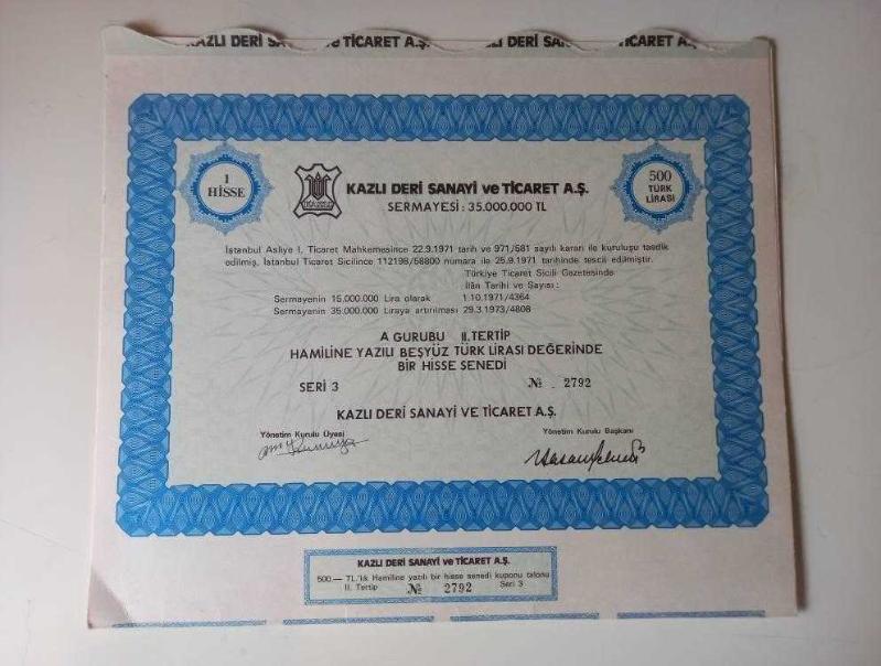 KAZLI DERİ SANAYİ VE TİCARET A.Ş. ESKİ HİSSE SENEDİ..., en son 4 ay önce güncellenmiştir.