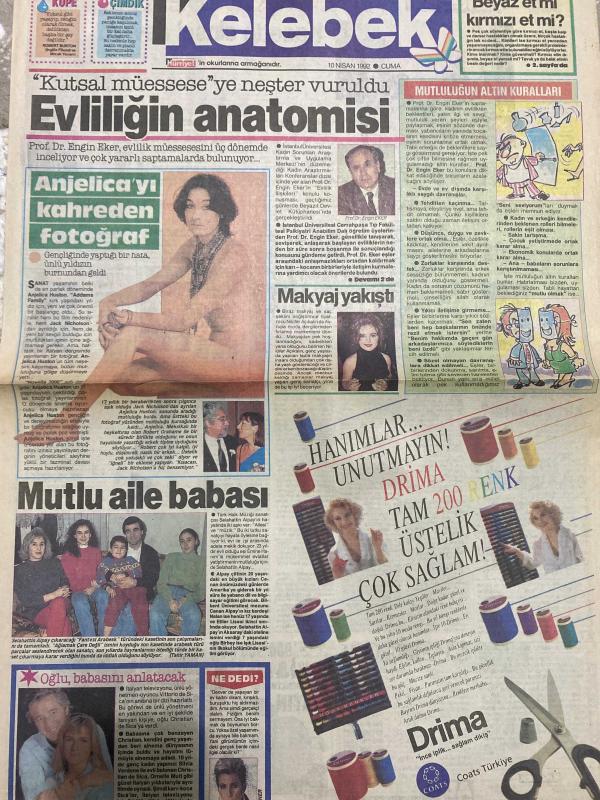KELEBEK GAZETESİ DOĞUM GÜNÜ HEDİYESİ (TURKISH NEWSPAPPER) - 10 NİSAN 1992 - TAM TAKIM 4 SAYFADIR -Prof. Dr. Engin Eker-Angelica Huston-Jack Nicholson-Selahattin Alpay-Azize Bergin-Muzaffer Buyrukçu-Cemal Dündar-Dr. Gündüz Tümen-Zeki-Metin-Evliliğin anatomisi-Angelica’yı kahreden fotograf-Mutlu aile babası-Kasette cinsel devrim-Bilmemek ayıp değil-Çocuğunuzun ilk partisi-Güzelliğin ilk şartı temizlik-Akan sular şarap olsa adlı eser Türkçe dilindedir.