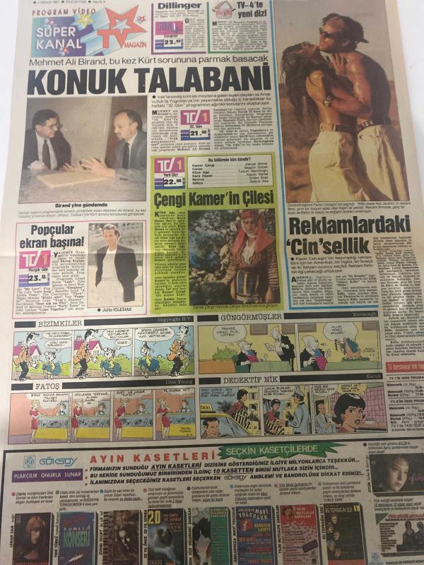 KELEBEK GAZETESİ DOĞUM GÜNÜ HEDİYESİ (TURKISH NEWSPAPPER) - 11 NİSAN 1991 - TAM TAKIM 4 SAYFADIR -Yasemin Yalçın-Yalçın Menteş-Banu Alkan-Kim Basinger-Zadora-Yalçın Menteş-Edip Akbayram-Şebnem Dinçer-Michael Caine-Prenses Margaret-Özcan Deniz-Sinan Özbalan-Komedyenin yıldızları-Banu bunu hep yapıyor-Dolu Dolu Solo-Kim Basinger’i şöhret şımarttı-Evcil hayvanlar kısırlaştırılıyor-Güzellik merkezleri kervanı genişliyor-İtalya’da Lulu izdihamı-Beyler ev işi yapın daha sağlıklı olun-Tablo verine-Soğukalgınlığından nasıl korunalım-Arachnophobia-Yaramaz çocuklar gibisin-Gösterime yeni çıkan filmler-Crocodile Dundee 2-Aida’lı ve Neşe’li saatler-Cinsellikten siyasete-Büyük yarış-Adam-Cennette ölüm adlı eser Türkçe dilindedir.