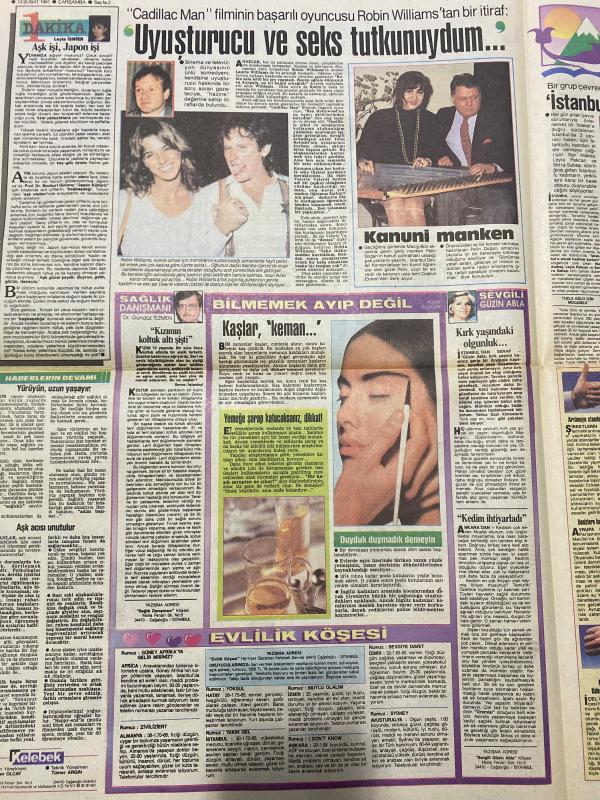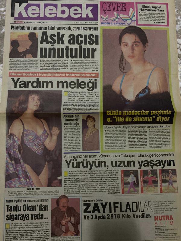KELEBEK GAZETESİ DOĞUM GÜNÜ HEDİYESİ (TURKISH NEWSPAPPER) - 13 ŞUBAT 1991 - TAM TAKIM 4 SAYFADIR -İlknur Bozkurt-Monica Sgarbi-Tanju Okan-Robin Williams-Leyla İsmiler-Güneş Tezmen-Azize Bergin-Nükhet Duru-Muzaffer Buyrukçu-Fatma Batukan-Leyla Poyraz-Atilla İçli-Aytaç Arman-Meral Oğuz-Harrison Ford-Gene Wilder-Aşk acısı unutulur-Yardım meleği-Bütün modacılar peşinde o ille de sinema diyor-Yürüyün uzun yaşayın-Tanju Okan’dan sigaraya veda-Uyuşturucu ve seks tutkunuydum-Kanun keman-Bilmemek ayıp değil-Kaşlar keman-Evlilik köşesi-İstanbul’u kadınlar kurtarır-Roman Rüzgarı-Yalana devam-Gülmeden güldürüyor-Biri ve Diğerleri-Frisco’lu Çocuk-Zaman tüneli adlı eser Türkçe dilindedir.
