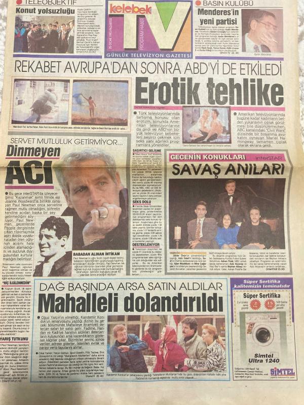 KELEBEK GAZETESİ DOĞUM GÜNÜ HEDİYESİ (TURKISH NEWSPAPPER) - 25 OCAK 1993 - TAM TAKIM 4 SAYFADIR -Aydın Menderes-Paul Newman-Joanne Woodward-Oğuz Yalçın-Kandemir Konduk-Fadime-Hanım-Kadir Çelik-Alev Baymur-Haluk Kurdoğlu-Ünal Kopeli-Peter Boyle-John Huston-Robert Shaw-Jacqueline Bisset-Dr Gündüz Tezmen-Zeki Metin-Erkan Bat-Mine Engez-Rekabet Avrupadan sonra ABDyi de etkiledi-Erotik tehlike-Servet mutluluk getirmiyor-Dinmeyen acı-Gecenin konukları-Savaş anıları-Dağ başında arsa satın aldılar-Mahalleyi dolandırıldı-Paul Newman otomobil yarışçısı-Kazanmak-İlk kez ekranda-Sayın Başkan-Deniz altında morfin mücadelesi-Derinlik-İkinci elden araba alırken-Bayan sürücülere uyarılar-407 gün sonra TRTdeliler-En iyileri devam ediyor-Mutluluk peşinde-Yalnızlığa son adlı eser Türkçe dilindedir.