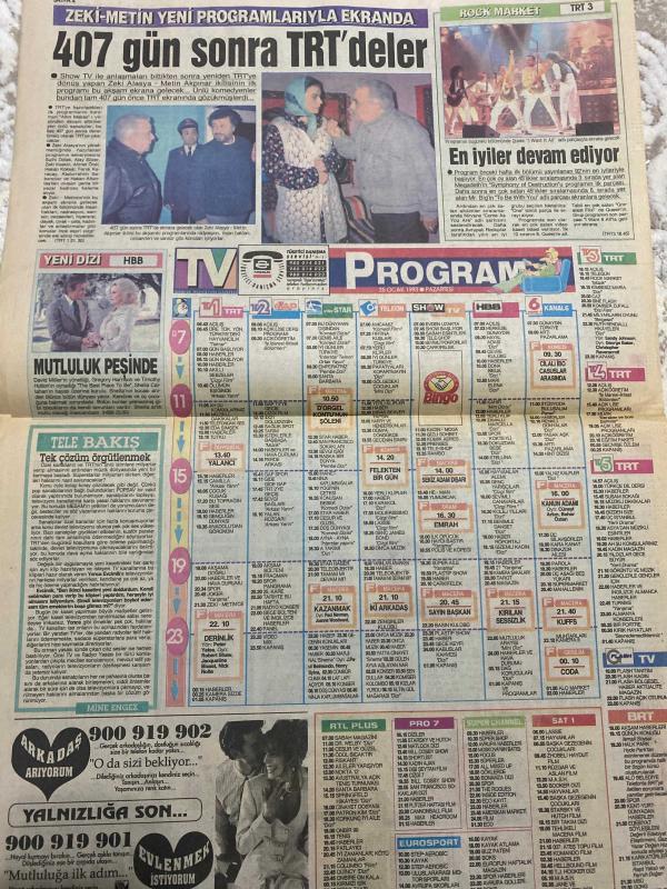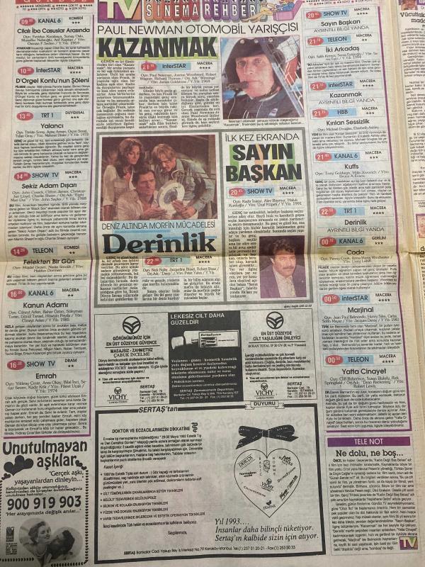 KELEBEK GAZETESİ DOĞUM GÜNÜ HEDİYESİ (TURKISH NEWSPAPPER) - 25 OCAK 1993 - TAM TAKIM 4 SAYFADIR -Aydın Menderes-Paul Newman-Joanne Woodward-Oğuz Yalçın-Kandemir Konduk-Fadime-Hanım-Kadir Çelik-Alev Baymur-Haluk Kurdoğlu-Ünal Kopeli-Peter Boyle-John Huston-Robert Shaw-Jacqueline Bisset-Dr Gündüz Tezmen-Zeki Metin-Erkan Bat-Mine Engez-Rekabet Avrupadan sonra ABDyi de etkiledi-Erotik tehlike-Servet mutluluk getirmiyor-Dinmeyen acı-Gecenin konukları-Savaş anıları-Dağ başında arsa satın aldılar-Mahalleyi dolandırıldı-Paul Newman otomobil yarışçısı-Kazanmak-İlk kez ekranda-Sayın Başkan-Deniz altında morfin mücadelesi-Derinlik-İkinci elden araba alırken-Bayan sürücülere uyarılar-407 gün sonra TRTdeliler-En iyileri devam ediyor-Mutluluk peşinde-Yalnızlığa son adlı eser, Kitap > Süreli Yayınlar > Gazeteler > Türkiye > Genel > Günlük kategorisinde İkinci El olarak satıştadır.