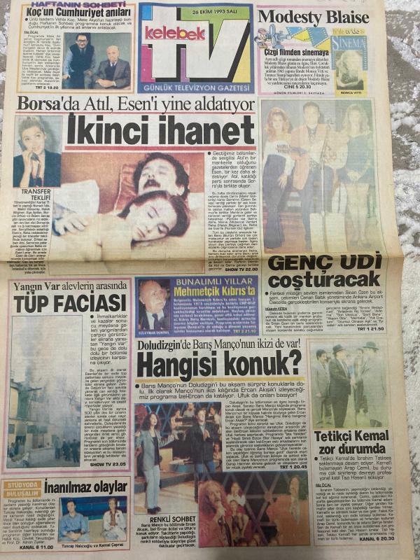 KELEBEK GAZETESİ DOĞUM GÜNÜ HEDİYESİ (TURKISH NEWSPAPPER) - 26 EKİM 1993 - TAM TAKIM 4 SAYFADIR -Vehbi Koç-Mete Akyol-Modesty Blaise-Monica Vitti-Barış Manço-Ercan Akışık-İbrahim Tatlıses-Nilüfer-Ferhan Onat-Reha Muhtar-Kerim Aydın-Selçuk Yöntem-Aziz Nesin-Temel Karamollaoğlu-Borsa’da Atıl Esen’i yine aldatıyor-İkinci ihanet-Tüp faciası-Genç Udi coşturacak-Hangisi konuk-Modesty Blaise-Cizgi filmden sinemaya-Hababam Sınıfı Dokuz Doğuruyor-Eskici ve Oğulları-Tanrı Misafiri-Annelige niyetlenince-Zamana karşı yarışırken-Müziğin huzuru şiirin büyüsü-Opera üzerine-Gündemde Sanat Var adlı eser Türkçe dilindedir.